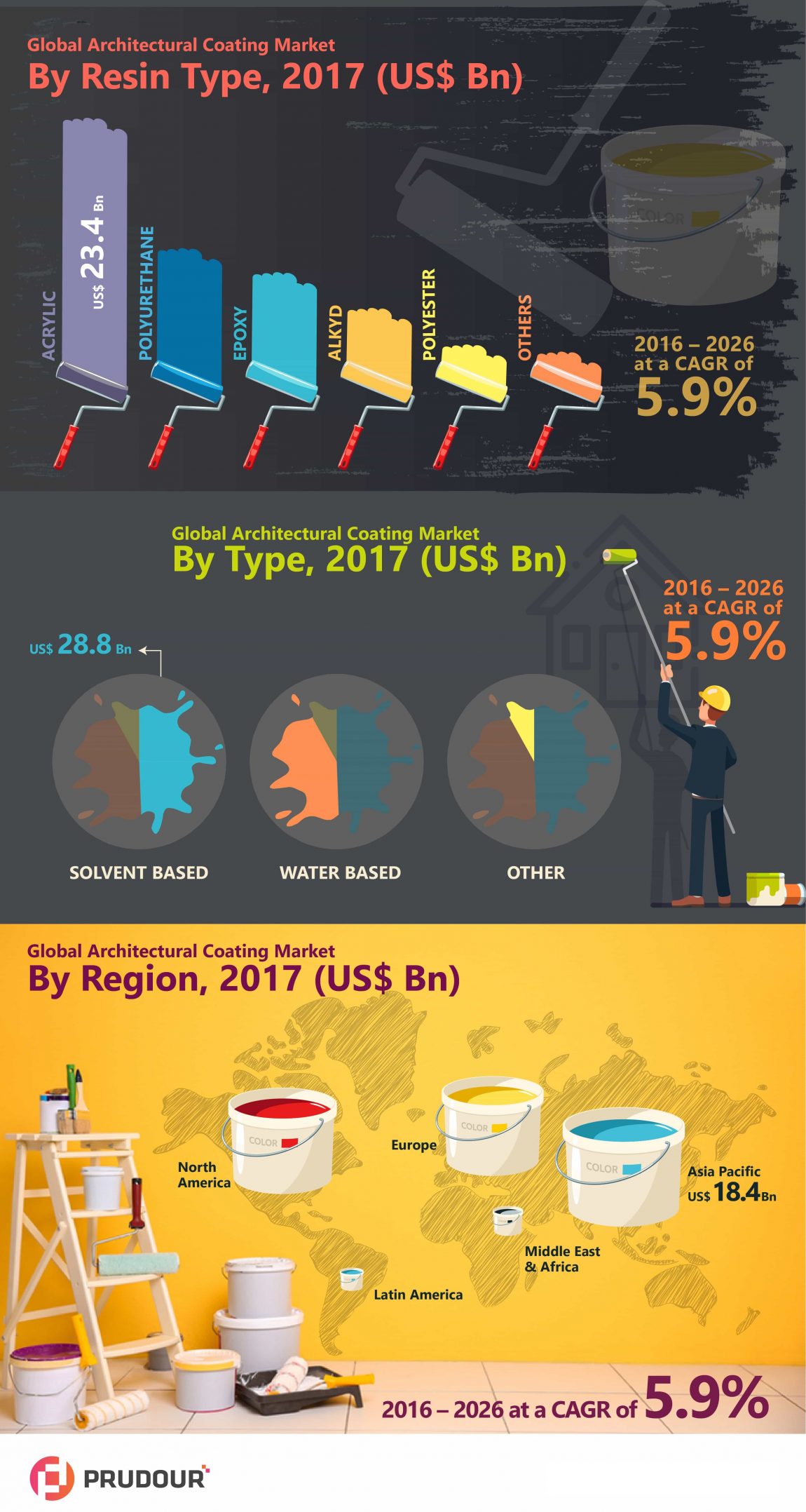 - The Worldwide Architectural Coating Market was valued at nearly US$ 58 Bn in 2017.