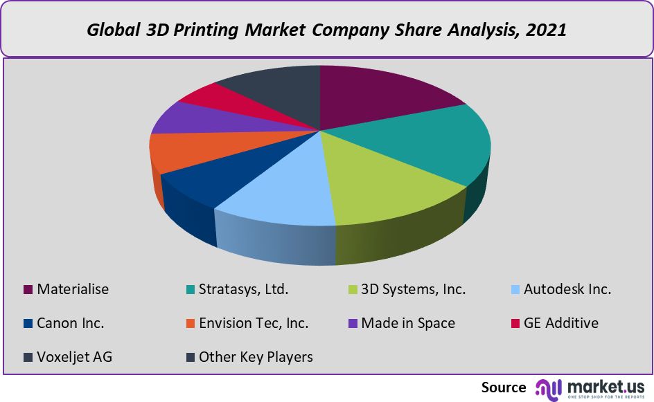 The market players are constantly improving the 3D printing technology in response to growing demand from aerospace, defense, healthcare, and other verticals for manufacturing. Major players recognize the potential for business transformation by incorporating additive manufacturing in new product development processes.
