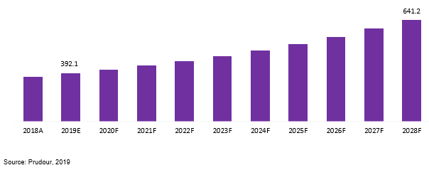The Global Dimethyl Carbonate (DMC) Market is projected to be US$ 392.1 Mn in 2019 to reach US$ 641.2 Mn by 2028 at a CAGR of 5.7%.