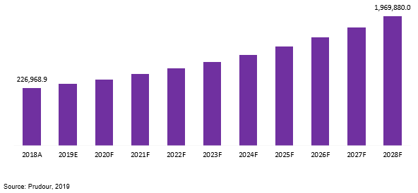 The global Engineering Services Outsourcing (ESO) market is projected to be US$ 226,968.9 Mn in 2018 to reach US$ 1,969,880.0 Mn by 2028 at a CAGR of 24.1%.
