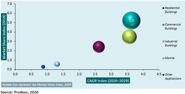 In terms of application, the commercial buildings segment accounted for the majority revenue shares of the global fire dampers market in 2020, and is projected to register the highest CAGR, with an attractiveness index of 5.3, over the forecast period. The residential buildings segment accounted for the second-highest number of revenue shares of the global fire dampers market in 2020, and is expected to continue to do so for the years to come.