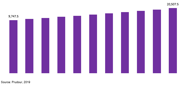 The global Integrated automated supply chain market is projected to be US$ 9,747.5 Mn in 2018 to reach US$ 20,507.5 Mn by 2028 at a CAGR of 6.7%.