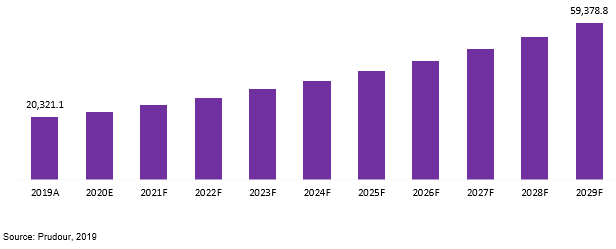 The global Leather Sofa market is projected to be US$ 20,321.1 Mn in 2019 to reach US$ 59,378.8 Mn by 2029 at a CAGR of 11.4%.